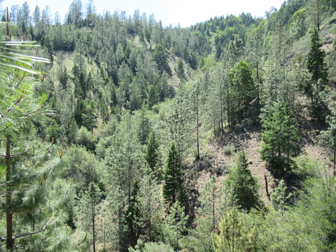 There are several stands of Douglas fir and pine that in future years would have commercial value. Much of the higher elevation land is serpentine rock and thin soils that support mainly manzanita and kinikinik shrubs with seasonal wildflowers. The canyons with their cascading creeks are home to cedars, oak, madrone, birch and Oregon myrtle (bay laurel). Myrtlewood is much in demand by woodworkers.